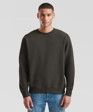 With a 100% cotton face ensuring perfect printing and embroidery results and a range of colours to choose from, Fruit?s Premium set-in sweat is suitable for all kinds of application. This super-soft garment features an inner brushed fleece and single Jersey back neck tape for comfort, while the cotton/elastane neck, waist and cuff ribs provide added warmth.