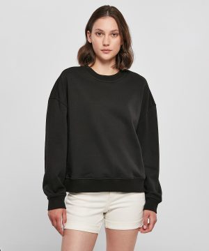Designed as a comfy, oversize fit with dropped shoulders, this women?s long sleeve shirt is an instant classic. The used cotton and polyester fabric ensures a cosy wearing experience. Furthermore, the fabric is suitable for further refining with flock and screen printing or embroidery. The supple women?s sweater offers a ribbed crew neck and wide rib cuffs on sleeves and hem that complete its feminine style.