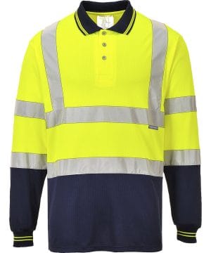 This style combines all the benefits of our best selling long sleeve polo with the additional feature of two-toning for even more practical benefit. The polyester bird eye knit material used is breathable light and comfortable.