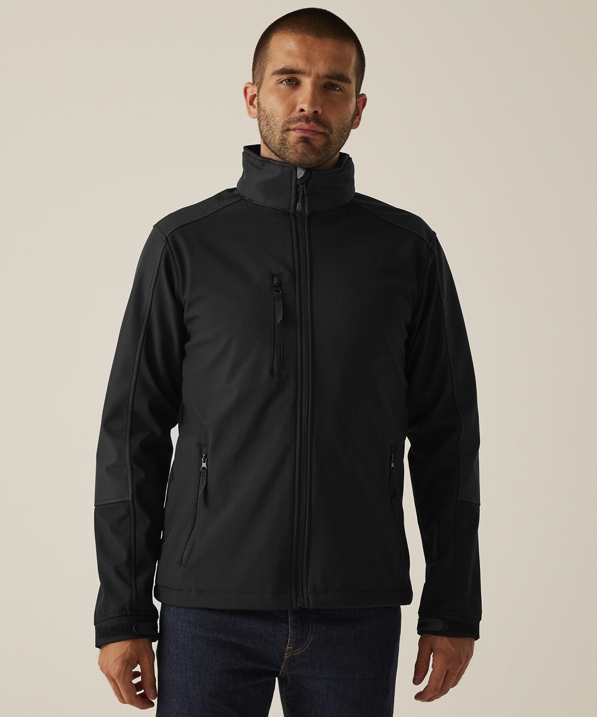 A cutting-edge softshell jacket using sustainable fabrics which has a windproof, water-resistant and breathable membrane with the added luxury of a micro polar fleece. Clever features include pre-formed elbows, reflective trims and multiple pockets.