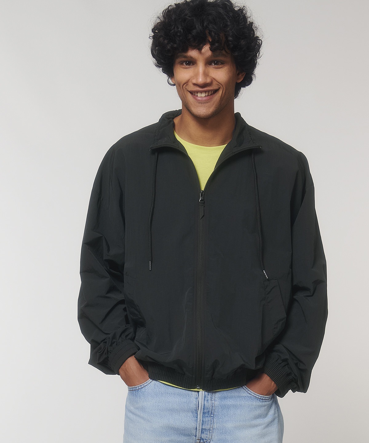 This sporty coach jacket pleases with a simple and functional design, which can be further enhanced through stitching, silk screening or flock printing. Its raglan cut with seamless shoulders in combination with the continuous press-button facing as well as the elastic cuffs turn this nice piece of garment into a real street wear style jacket. You will also get some handy side pockets and an elastic waistband with drawstring and stoppers at your disposal. The sophisticated design is rounded off by a simple yet elegant collar. The functional and robust upper is made of nylon, the lining out of cotton and taffeta.